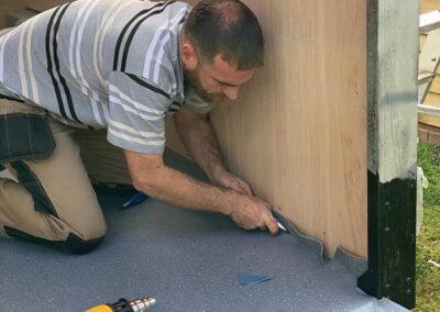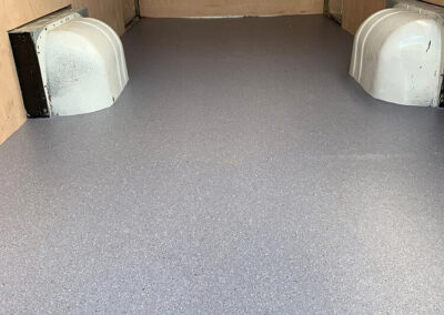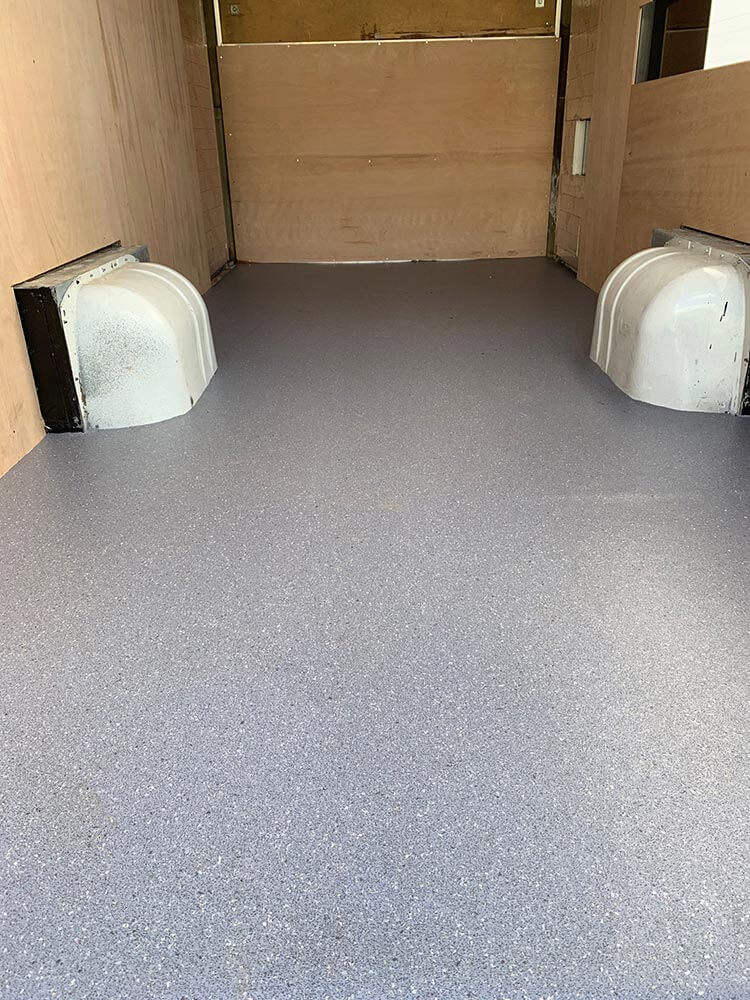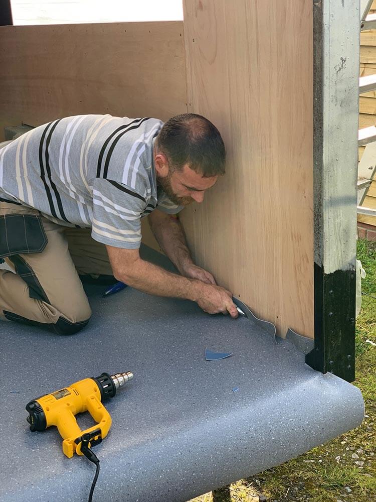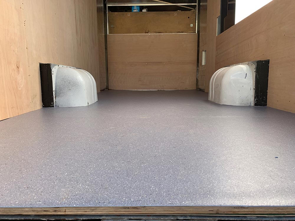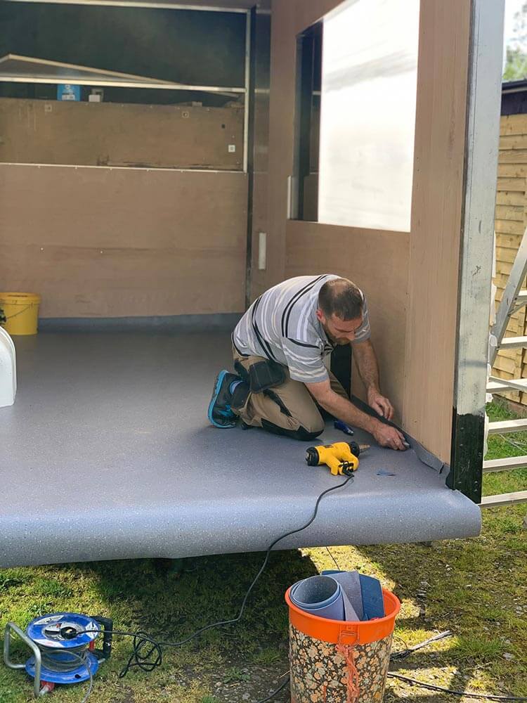 Vinyl Floor Catering Van We supplied and fitted a hard wearing vinyl floor. JM Carpets supplied and fitted this vinyl floor catering van horse box conversion. A vinyl floor satisfies the requirements for food handling set out by the East Devons Environmental Health Officer.